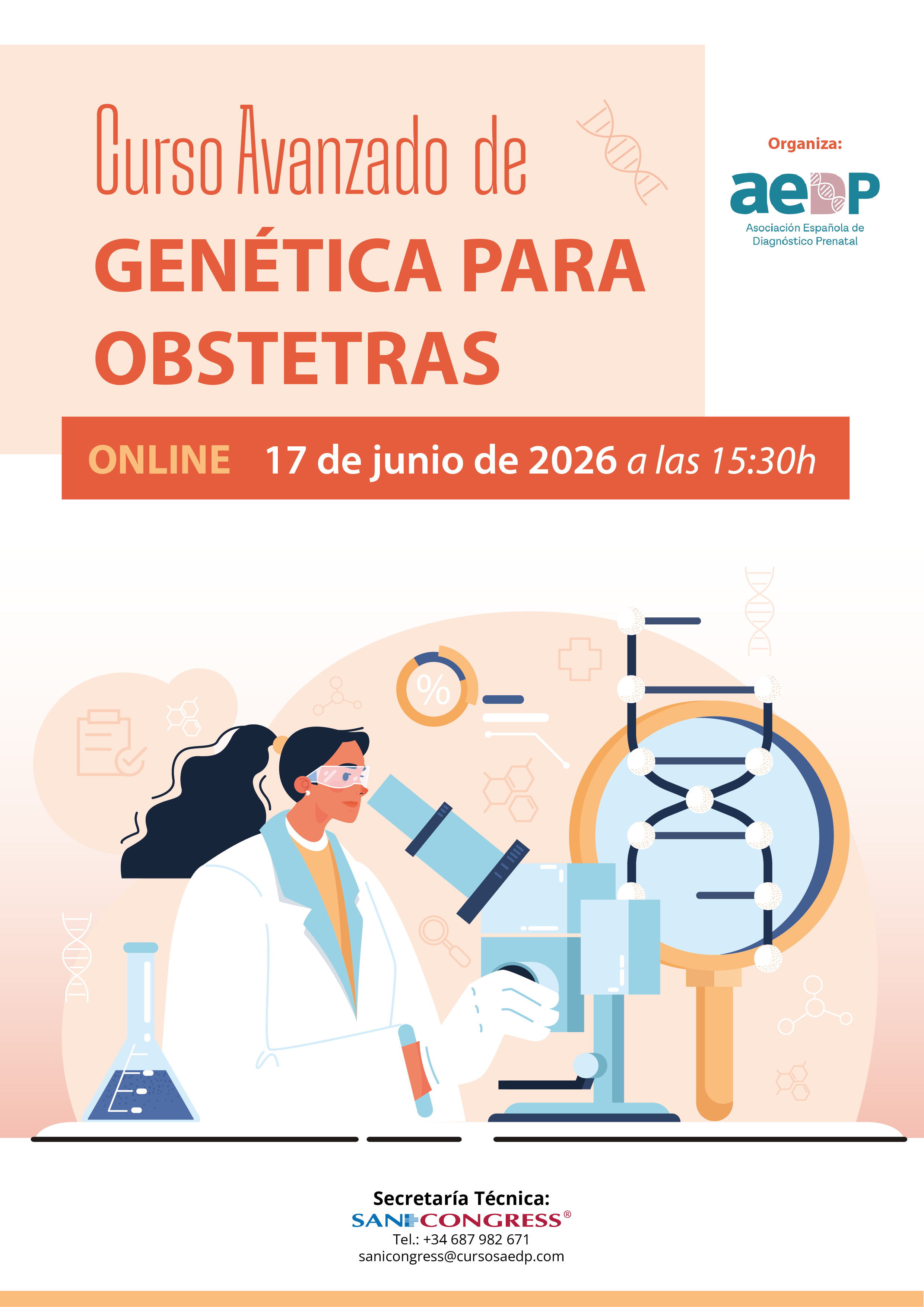 El curso avanzado de Genética para obstetras está enfocado a revisar las técnicas novedosas en cribado y diagnóstico prenatal, no convencionales. En el apartado de los cribados prenatales, se tratará las ampliaciones del DNA libre circulante y el cribado de portadores de enfermedades recesivas. Asimismo, se revisarán las nuevas aplicaciones de la secuenciación (exoma, genoma, lecturas largas y mapeo genómico óptico), en el diagnóstico prenatal de enfermedades monogénicas. No vamos a estudiar técnicas genéticas, sino que vamos a revisar sus indicaciones, limitaciones y como comunicar sus resultados, todo enfocado a ayudar al obstetra en su aplicación clínica.